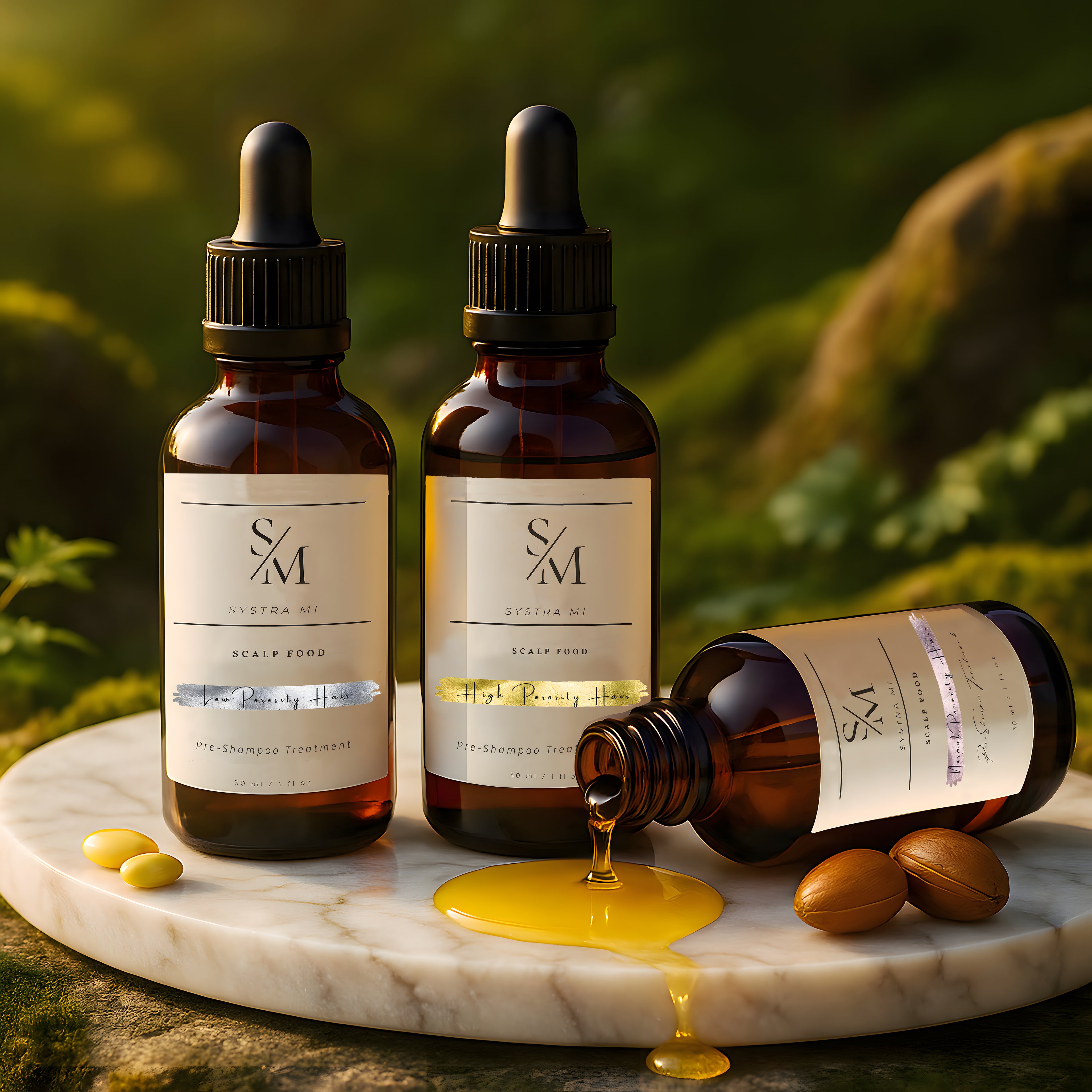 At Systra Mi, we believe healthy hair starts with a healthy scalp. Our oils are 100% cold-pressed, natural, and tailored to your hair’s porosity — for balance, hydration, and strength.
